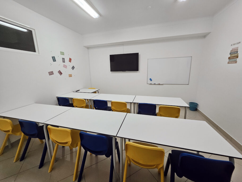 As instalações da Lingua Academy apresentam salas de aula modernas, diversos recursos tecnológicos disponíveis para o/a aluno/a, áreas de estudo e espaços para atividades.